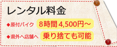 免許を取得されてバイク乗車経験の少ない方、免許取り立ての方などでバイクに乗る事が危険であるとこちらが判断した時はレンタルをお断りさせてもらう場合があります。
